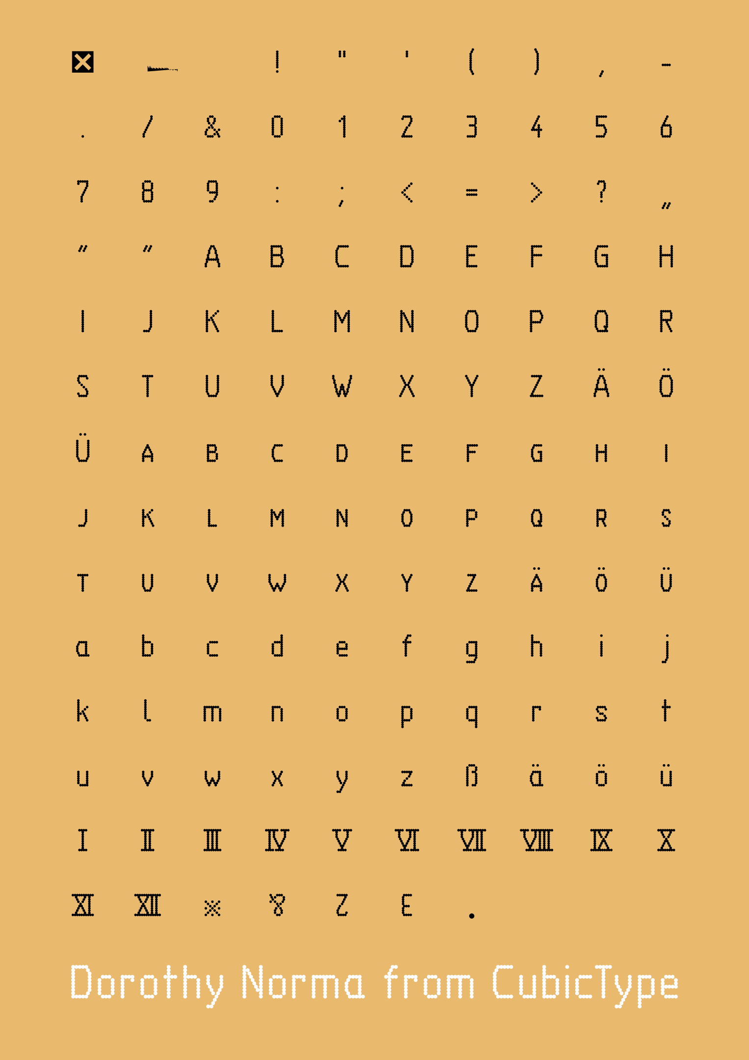 4. Dorothy Norma small-caps - a completely new set of small-caps for Dorothy Norma, a dot matrix version of German technical drawing lettering.