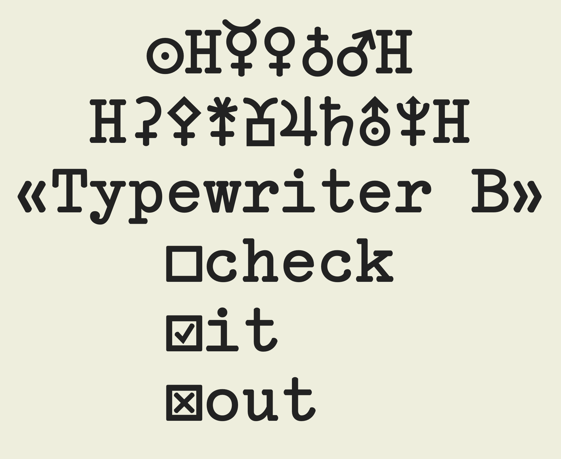 This is my last day and the last release for my Advent of Type. Today’s release is an update to the already popular Typewriter B font which i’ve update to add planet symbols, ballot boxes, and a few more things. Enjoy!